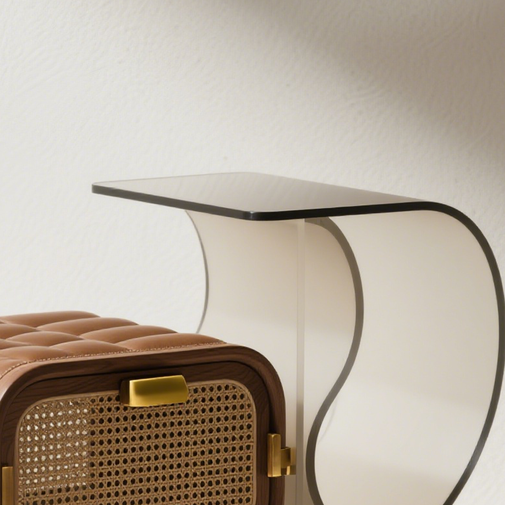 Nowoczesny akrylowo-skórzany fotel ze zintegrowanym stolikiem